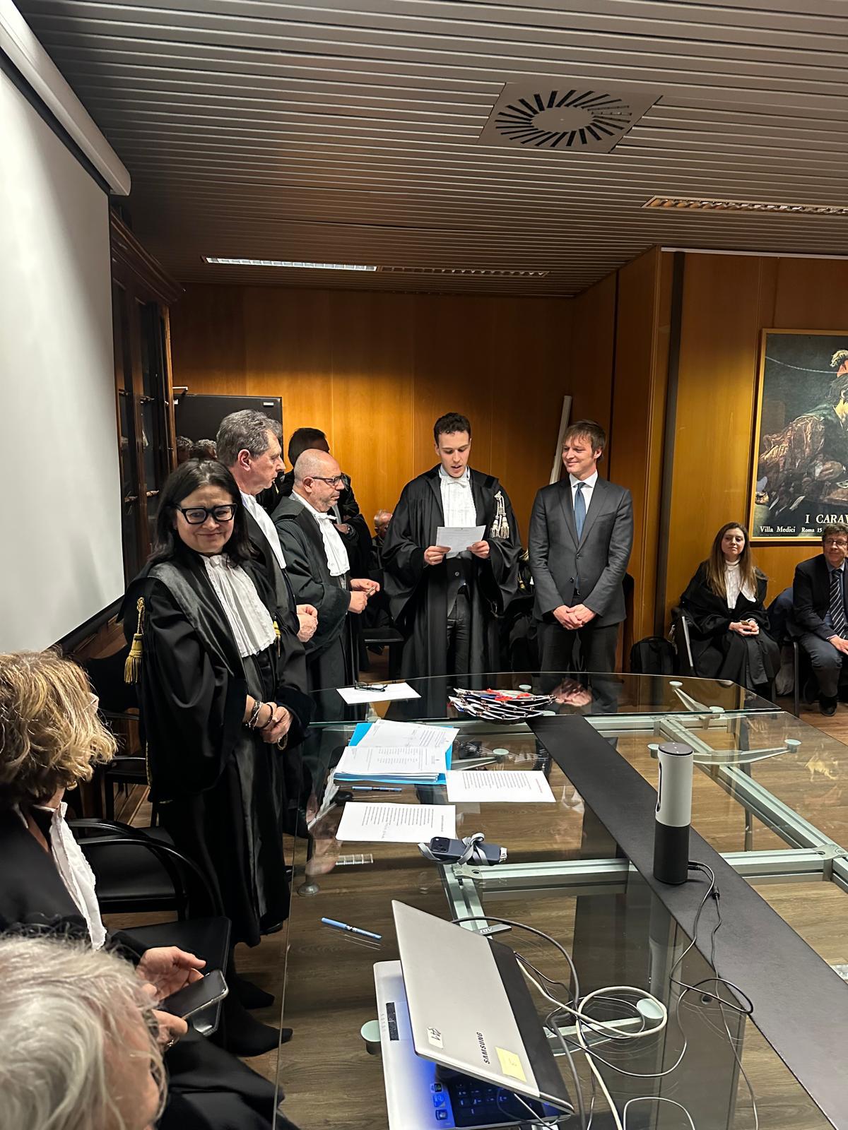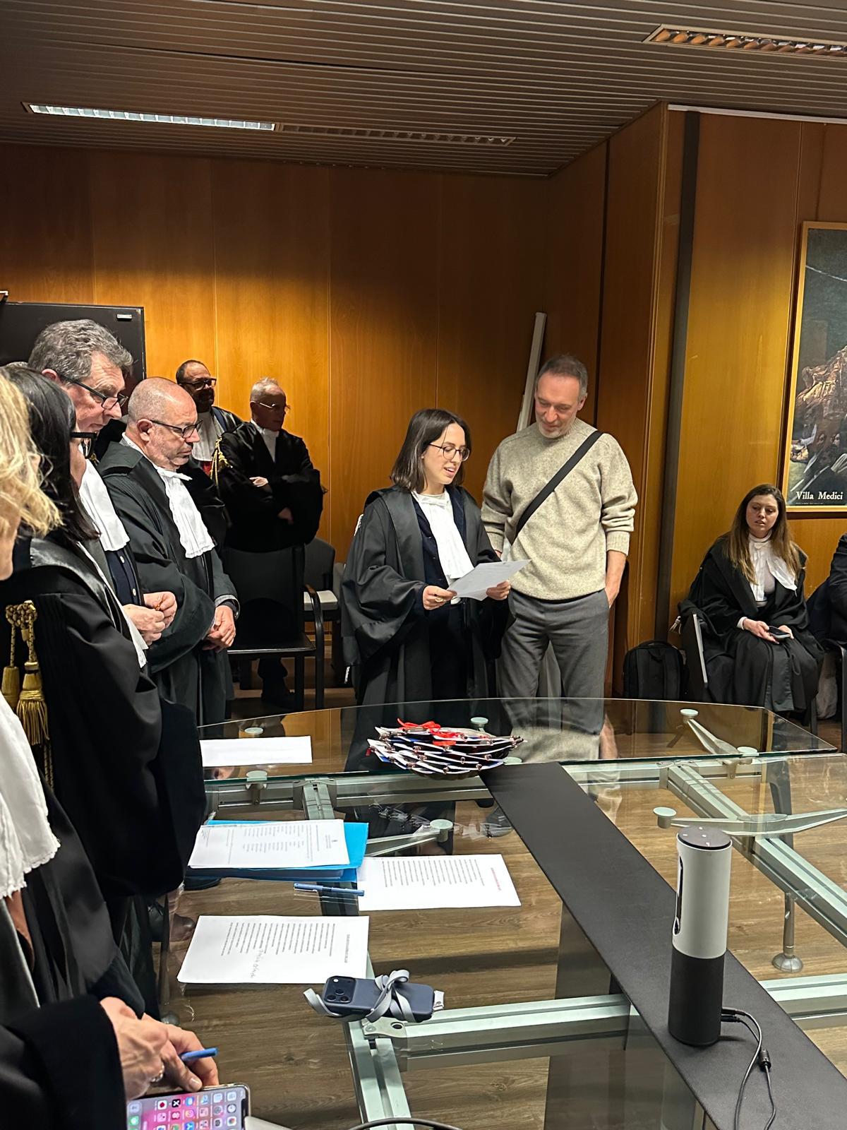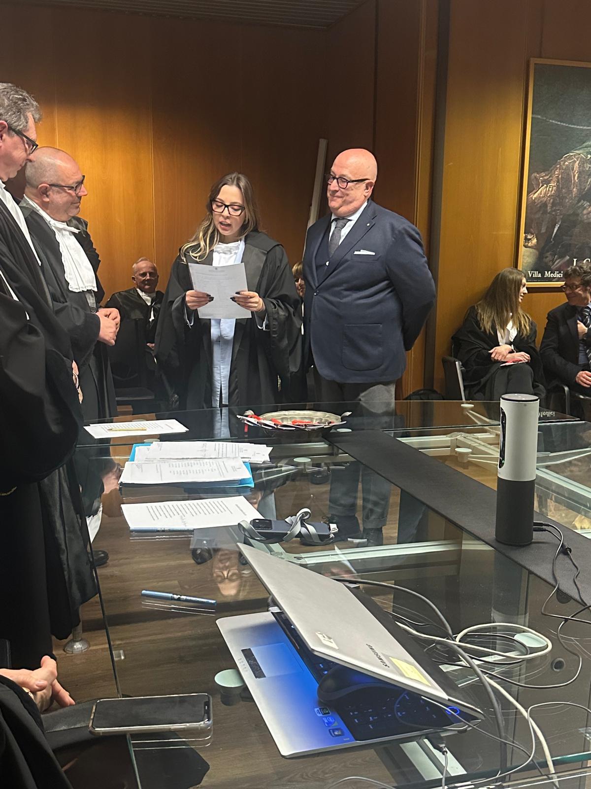 Giuramento del 16 febbraio 2026 Giuramento del 4 novembre 2025 Complimenti ai giovani dottori e dottoresse che hanno formalizzato il primo impegno solenne della loro vita professionale chiudendo il patrocinio sostitutivo. Giuramento del 2 dicembre 2024 Video Giuramento del 7 ottobre 2024